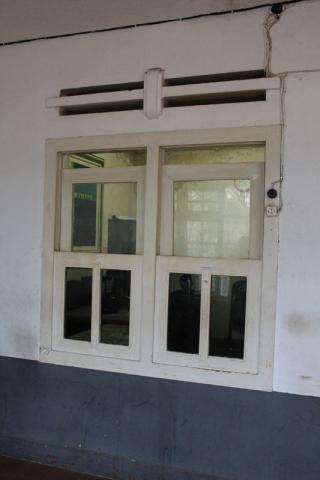 Jendela di sisi kiri pintu masuk kaca. Jendela ini dibuka dengan cara ditarik ke bawah atau ke atas.