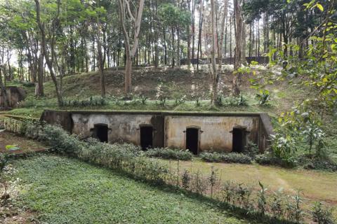 Bangunan di sebelah kiri gerbang masuk yang panjang bangunannya lebih pendek dari bangunan 1 dan tampak hanya 4 pintu